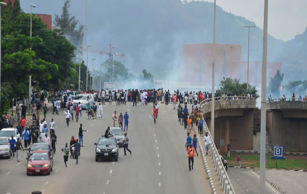 foto portada_Olamikan Gbemiga/AP/Archivo La policía lanza gas lacrimógeno durante una protesta contra la crisis del costo de vida en Nigeria en Abuja el 1 de agosto de 2024.