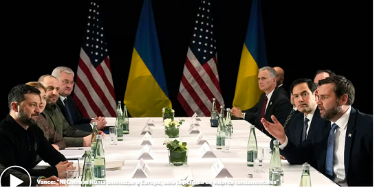 fotoportada Volodímir Zelenski (izquierda) y J. D. Vance (derecha), en Múnich (Alemania), este viernes.Foto: Matthias Schrader (AP/Lapresse) | Vídeo: EPV