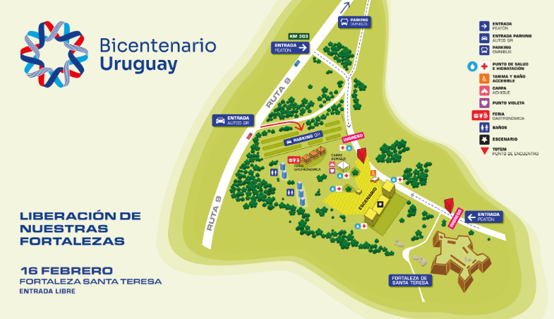 Está previsto un estacionamiento para autobuses unos metros después de la entrada de la Fortaleza de Santa Teresa hacia el este. La Policía Caminera será la encargada de guiar a los conductores al lugar. Habrá también un camino para que el público acceda caminando al predio.