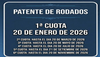 El próximo martes 20 de enero vence el plazo para abonar la primera cuota de la Patente de Rodados y para el pago anual del tributo. Los contribuyentes que paguen la totalidad de la patente antes de esta fecha obtendrán un descuento del 20%. Posteriormente, el 30 de enero, vence la Contribución Inmobiliaria Rural, que ofrece un descuento de hasta el 25% por pago contado y buen pagador.