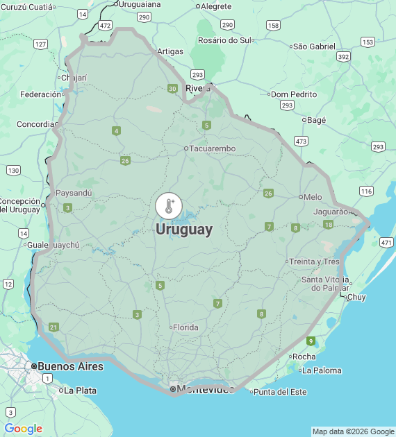 Descripción: Masa de aire cálida afectará la región generando temperaturas extremas : ZONA SUR: Temperaturas máximas entre 33-35°C. ZONA NORTE: Temperaturas maximas mayores a 35°C. Temperaturas mínimas iguales o superiores a los 21/22ºC en todo el país. En la faja costera atlántica por efecto de la brisa de mar las temperaturas no alcanzarán las temperaturas extremas . Se continuará monitoreando la situación y se informará ante eventuales cambios.