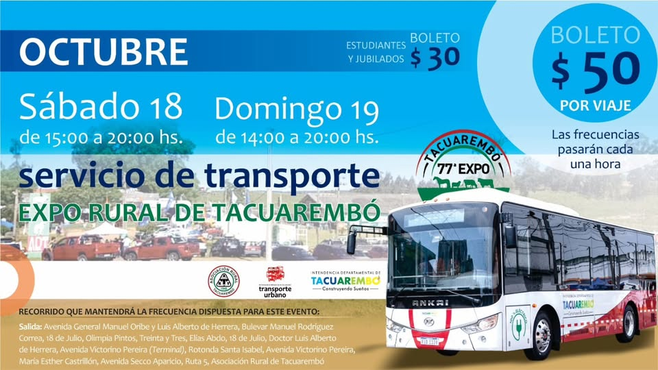 Servicio Especial de Transporte Urbano por la 77ª Exposición Ganadera de Tacuerembó